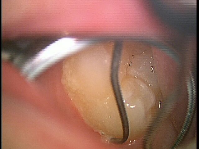 私は無麻酔で歯石を取りますが、歯科用顕微鏡があると結構な深さまで無麻酔でいけます。